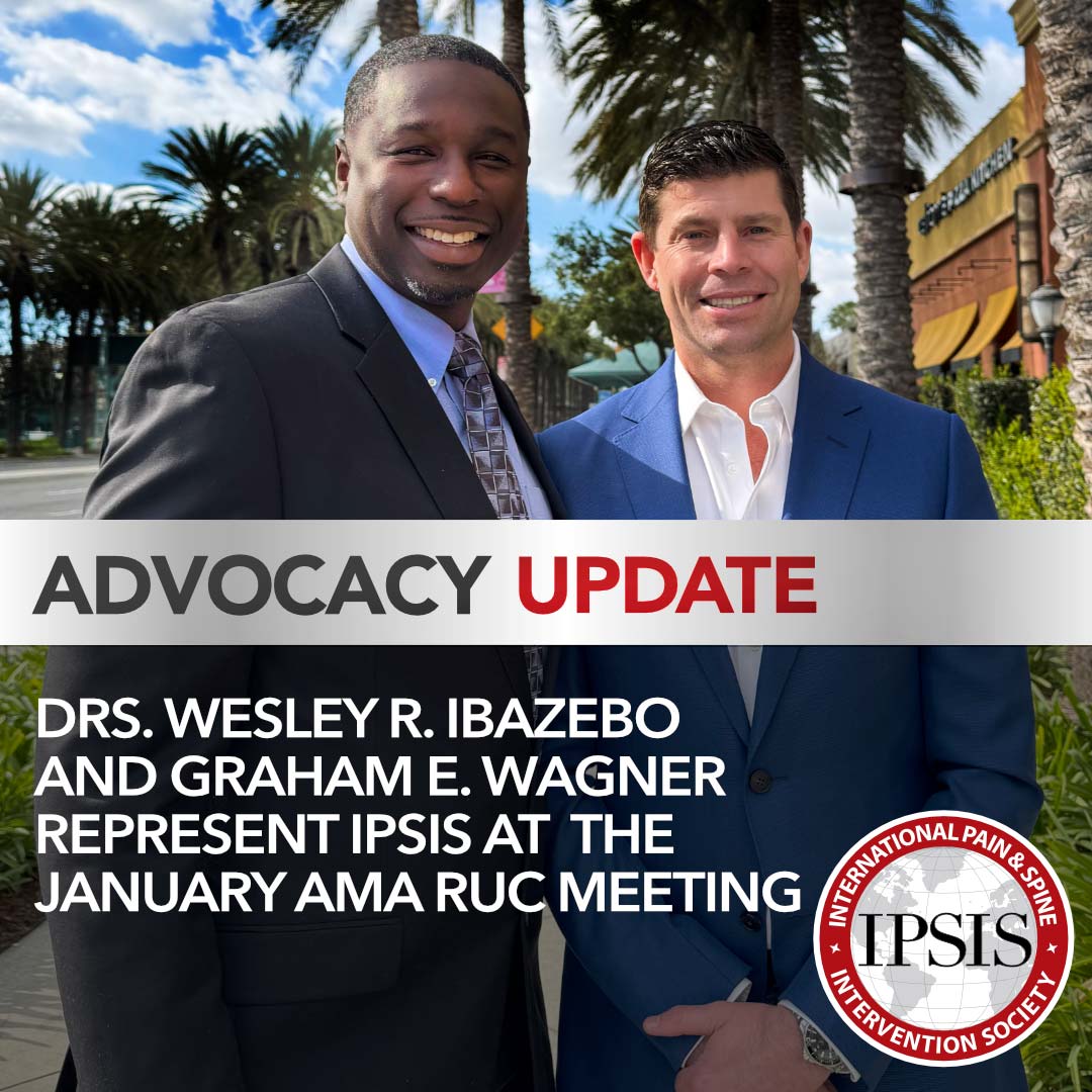 IPSIS holds a seat at this and other AMA forums by proving that a high percentage of our members also maintain membership in the AMA. We encourage all members to maintain their AMA membership to assure that the voice of interventional pain medicine continues to be heard.
